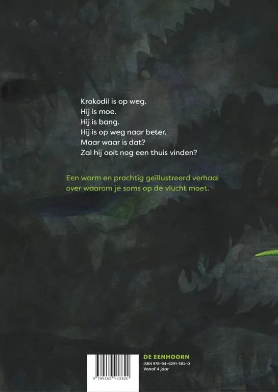 Krokodil is op weg. Hij is moe en bang. Thuis was het niet veilig meer. En dus moest Krokodil vertrekken. Hij is op weg naar beter. Waar dat is? Dat weet Krokodil nog niet. De reis is lang en gevaarlijk. En overal waar Krokodil komt, hoort hij hetzelfde: ‘Krokodillen zijn gevaarlijk! Ga weg, Krokodil!’ Voor Krokodil is nergens plaats. Zal hij ergens welkom zijn?