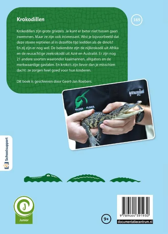 Krokodillen zijn grote griezels. Je kunt er beter niet tussen gaan zwemmen. Maar ze zijn ook interessant. Wist je bijvoorbeeld dat deze stoere reptielen al in dezelfde tijd leefden als de dino’s? En zij zijn er nog wel. De bekendste zijn de nijlkrokodil uit Afrika en de reusachtige zeekrokodil uit Azië en Australië. Er zijn nog 21 andere soorten waaronder de kaaimannen, alligators en de merkwaardige gavialen. En kroko’s zijn liever dan je misschien dacht: ze zorgen heel goed voor hun kinderen.