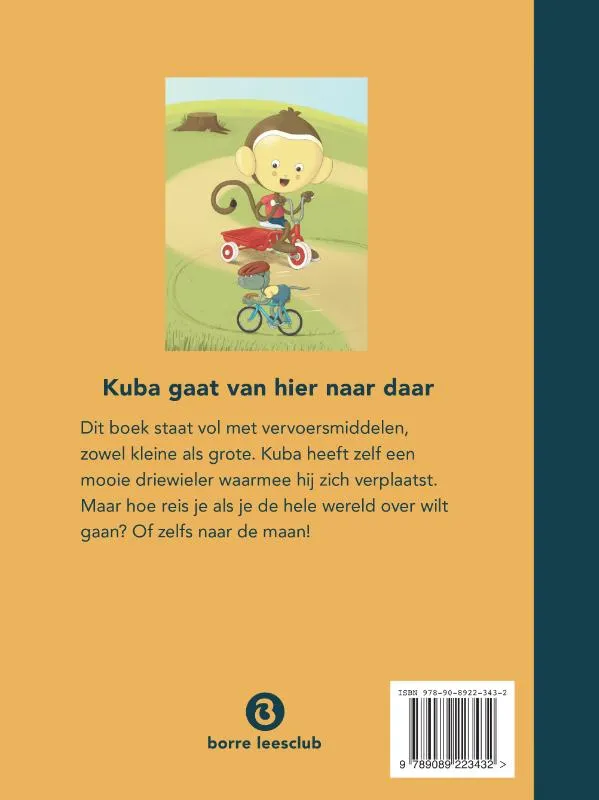 [Vanaf 2 jaar] Dit boek staat vol met vervoersmiddelen, zowel kleine als grote. Kuba heeft zelf een mooie driewieler waarmee hij zich verplaatst. Maar hoe reis je als je de hele wereld over wilt gaan? Of zelfs naar de maan!