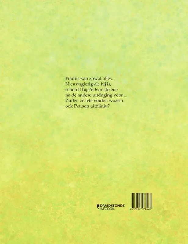 Findus kan zowat alles.Nieuwsgierig als hij is, schotelt hij Pettson de ene na de andere uitdaging voor…Zullen ze iets vinden waarin ook Pettson uitblinkt?