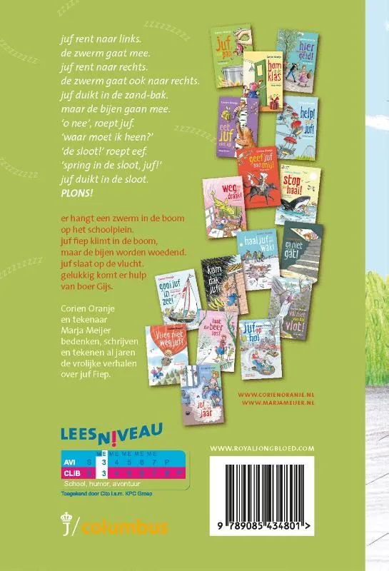 Er vliegt ineens een bij door de klas. Juf Fiep vangt hem en brengt hem samen met haar klas naar het schoolplein. Daar ontdekken de kinderen een nest in de boom. Juf Fiep klimt in de boom om het nest ergens anders heen te brengen. Maar de bijen worden woedend en juf slaat op de vlucht. Gelukkig komt er hulp van boer Gijs, die bijenhouder is.
