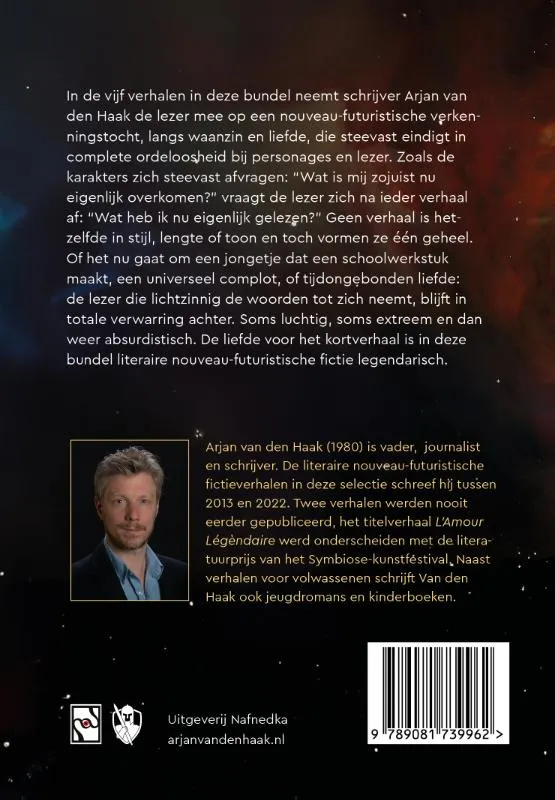 In de vijf verhalen in deze bundel neemt schrijver Arjan van den Haak de lezer mee op een nouveau-futuristische verkenningstocht, langs waanzin en liefde, die steevast eindigt in complete ordeloosheid bij personages en lezer. Zoals de karakters zich steevast afvragen: “Wat is mij zojuist nu eigenlijk overkomen?” vraagt de lezer zich na ieder verhaal af: “Wat heb ik nu eigenlijk gelezen?” Geen verhaal is hetzelfde in stijl, lengte of toon en toch vormen ze één geheel. Of het nu gaat om een jongetje dat een schoolwerkstuk maakt, een universeel complot, of tijdongebonden liefde: de lezer die lichtzinnig de woorden tot zich neemt, blijft in totale verwarring achter. Soms luchtig, soms extreem en dan weer absurdistisch. De liefde voor het kortverhaal is in deze bundel literaire nouveau-futuristische fictie legendarisch.