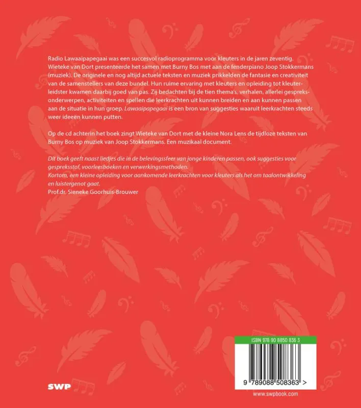 Het Lawaaipapegaaiboek bestaat uit liedjes, activiteiten, verhalen en een cd te gebruiken in het onderwijs aan kleuters. De samenstellers, Evelyn Akkermans, Molly Tellegen en Wieteke van Dort mochten een keuze maken uit de schat van liedjes die Burny Bos en Joop Stokkermans in de loop der jaren geschreven hebben voor het veel bekroonde AVRO programma Radio Lawaaipapegaai.