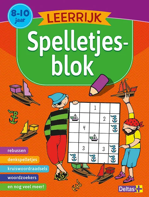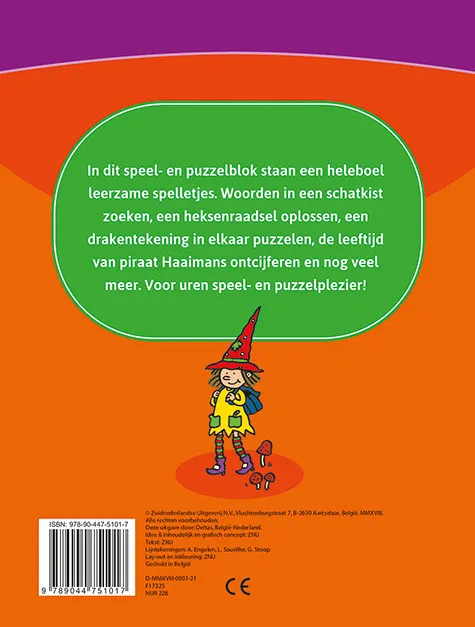 In dit speel- en puzzelblok vindt je kind een heleboel leerzame spelletjes om urenlang pret te beleven! Woorden in een schatkist zoeken, een heksenraadsel oplossen, een drakentekening in elkaar puzzelen, de leeftijd van piraat Haaimans ontcijferen en nog veel meer… Je kind zal zich niet gauw vervelen!