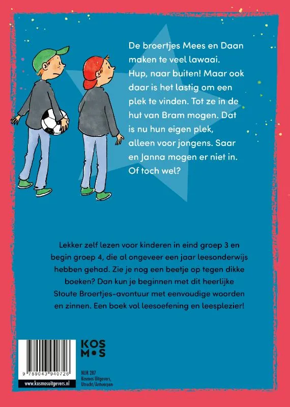 Je kent Daan en Mees misschien als de buurjongens van de Zoete Zusjes Saar en Janna. Nu kunnen ook de allerjongste lezers genieten van de avonturen van de Stoute Broertjes. Met in totaal maar liefst 144 bladzijden leesplezier zullen kinderen in groep 2 en 3 kunnen beginnen met het herkennen en lezen van de eerste letters, woordjes en zinnen. Eerst samen, en dan zelf! Natuurlijk zijn de verhalen weer opgevrolijkt met de leukste illustraties van Iris Boter.