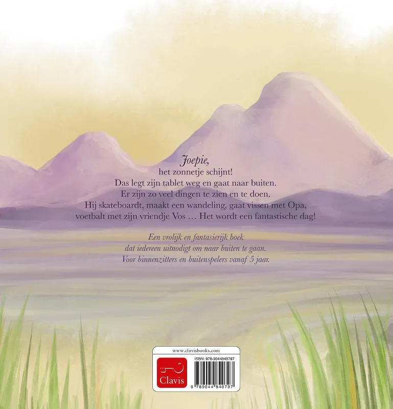 Joepie, het zonnetje schijnt! Das legt zijn tablet weg en gaat naar buiten. Er zijn zo veel dingen te zien en te doen. Hij skateboardt, maakt een wandeling, gaat vissen met zijn Opa, voetbalt met zijn vriendje Vos … Het wordt een fantastische dag!