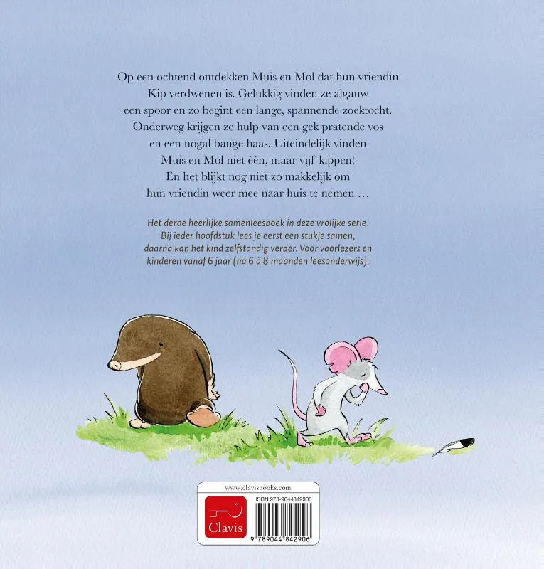 Op een ochtend ontdekken Muis en Mol dat hun vriendin Kip verdwenen is. Gelukkig vinden ze algauw een spoor en zo begint een lange, spannende zoektocht. Onderweg krijgen ze hulp van een gek pratende vos en een nogal bange haas. Uiteindelijk vinden Muis en Mol niet één, maar vijf kippen! En het blijkt nog niet zo makkelijk om hun vriendin weer mee naar huis te nemen …