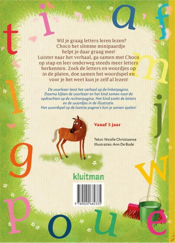 Wil je graag letters leren lezen? Choco het slimme minipaardje helpt je daar graag mee! Luister naar het verhaal, ga samen met Choco op stap en leer onderweg steeds meer letters herkennen. Zoek de letters en woordjes op in de platen, doe samen het woordspel en voor je het weet kun je zelf al lezen!