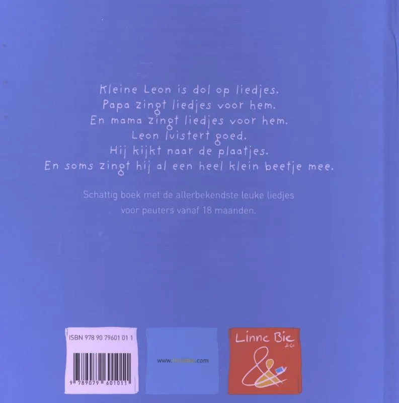 Bekende kinderliedjes, waar de kleine Leon dol op is. Vierkant, hardkartonnen prentenboek met eenvoudige tekeningen in kleur. Vanaf ca. 1,5 jaar.