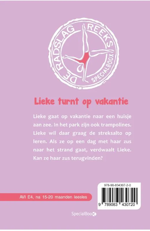 Lieke gaat op vakantie naar een huisje aan zee. In het park zijn ook trampolines. Lieke wil daar graag de streksalto op leren. Als ze op een dag met haar zus naar het strand gaat, verdwaalt Lieke. Kan ze haar zus terugvinden?