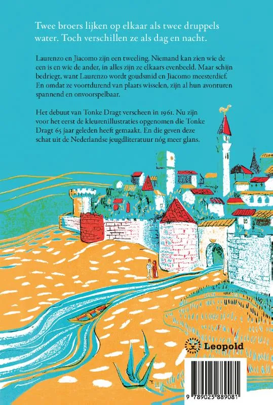In de nieuwe, luxe uitgave van Verhalen van de tweelingbroers van Tonke Dragt lijken Laurenzo en Jiacomo op elkaar als twee druppels water, of als twee zandkorrels. Niemand weet wie de een is, en wie de ander. Maar dat is alleen hun uiterlijk – wat ze doen en hoe; dat is heel verschillend… En omdat ze voortdurend verwisselen wie wie is, maken ze hun avontuur spannend en onvoorspelbaar, zelfs voor elkaar.