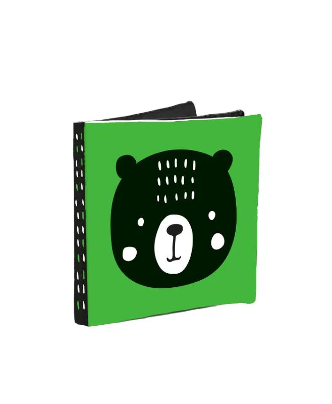 Een knisperboekje in zwart-wit, met vrolijke kleuraccenten voor baby’s.