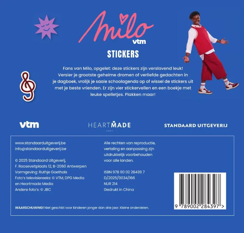 Fans van Milo, opgelet: deze stickers zijn verslavend leuk!Versier je grootste geheime dromen of verliefde gedachten in je dagboek, vrolijk je saaie schoolagenda op of wissel de stickers uit met je beste vrienden. Er zijn vier stickervellen en een boekje met leuke spelletjes. Plakken maar!