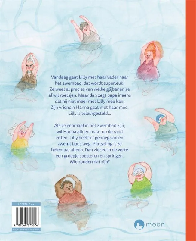 Het is eindelijk zaterdag. Vandaag gaat Lilly met haar vader naar het zwembad, dat wordt superleuk! Ze weet al precies van welke glijbanen ze af wil roetsjen. Maar dan zegt papa ineens dat hij niet meer met Lilly mee kan. Zijn vriendin Hanna gaat met haar mee. Lilly is teleurgesteld… Als ze eenmaal in het zwembad zijn, wil Hanna alleen maar op de rand zitten. Lilly heeft er genoeg van en zwemt boos weg. Plotseling is ze helemaal alleen. Dan ziet ze in de verte een groepje spetteren en springen. Wie zouden dat zijn?