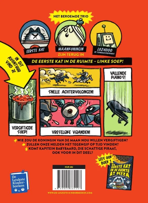 De eerste kat in de ruimte – linke soep is het tweede deel van deze hilarische graphic novel-serie voor de fans van van Dogman en Het leven van een loser. Leuk om zelf te lezen vanaf 7 jaar, ook voor minder fanatieke lezers.