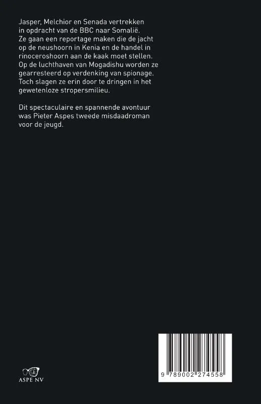 Jasper, Melchior en Senada vertrekken in opdracht van de BBC naar Somalië. Ze gaan een reportage maken die de jacht op de neushoorn in Kenia en de handel in rinoceroshoorn aan de kaak moet stellen. Op de luchthaven van Mogadishu worden ze gearresteerd op verdenking van spionage. Toch slagen ze erin door te dringen in het gewetenloze stropersmilieu.