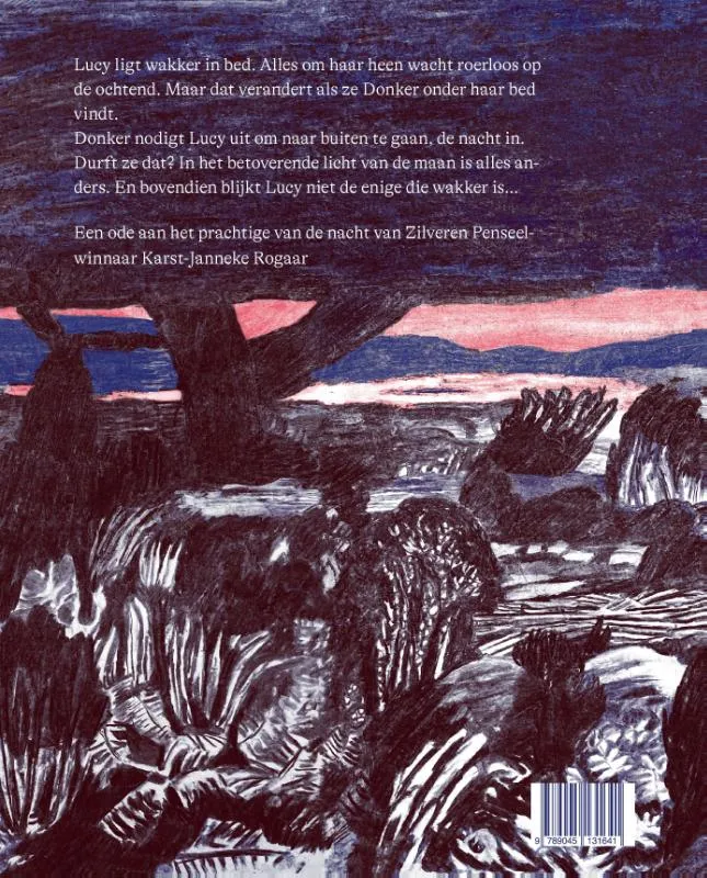 Karst-Janneke Rogaar schreef en tekende een bijzonder sfeervol prentenboek over een meisje dat eropuit trekt in het donker. ’s Nachts, met alleen het betoverende licht van de maan, is de wereld vol met nieuwe geuren en geluiden. En bovendien blijkt Lucy niet de enige die wakker is…