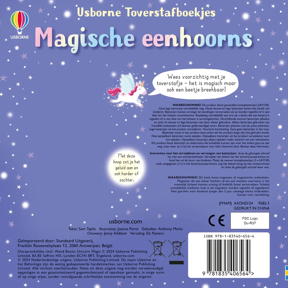 Als je de stippen op de bladzijden aanraakt met de toverstaf komen de eenhoorns tot leven. Met prachtige muziek en geluiden wordt een interactieve wereld gecreëerd. De lezer nodigt met toverspreuken alle eenhoorns uit voor een feest.