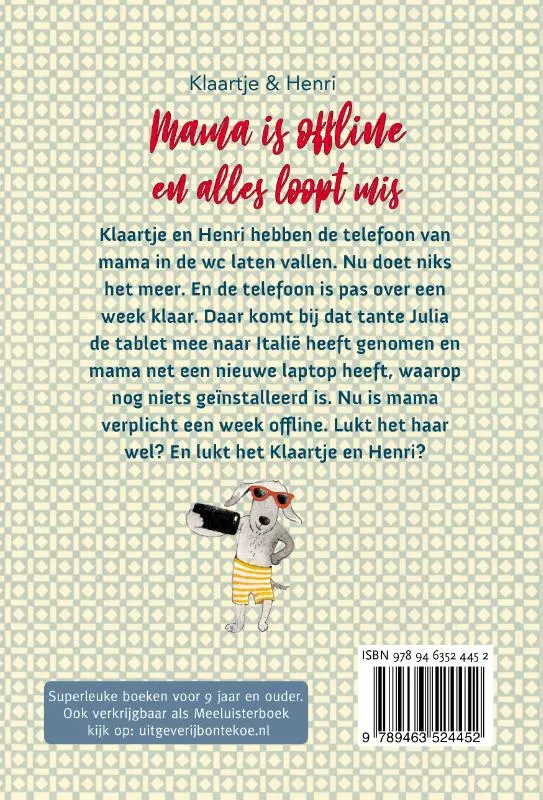 Klaartje en Henri hebben de telefoon van mama in de wc laten vallen. Nu doet niks het meer. En de telefoon is pas over een week klaar. Daar komt bij dat tante Julia de tablet mee naar Italië heeft genomen en mama net een nieuwe laptop heeft, waarop nog niets geïnstalleerd is. Nu is mama verplicht een week offline. Lukt het haar wel? En lukt het Klaartje en Henri?