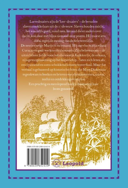 De zestienjarige Marijn is zo iemand. Hij ontvlucht zijn eiland Curacao en gaat werken als slavenarts. Zijn belevenissen – de uitzichtloze liefde voor het slavinnetje Knikkertje, de orkaan, zijn gevangenneming op het kaperschip – laten zich lezen als een spannend en soms schokkend avonturenverhaal. Maar dat verhaal is gebaseerd op historische feiten die Miep Diekmann tegenkwam in boeken en brieven van slavenmeesters, artsen, zeelui en ontdekkingsreizigers.