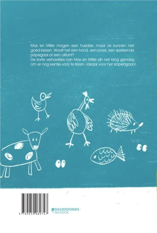 Max en Millie mogen een huisdier, maar ze kunnen niet goed kiezen. Wordt het een hond, een poes, een sprekende papegaai of een olifant?De korte verhaaltjes van Max en Millie zijn net lang genoeg om er nog eentje voor te lezen. Ideaal voor het slapengaan!