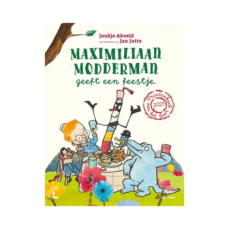 Maximiliaan Modderman geeft in de tuin een feest voor zijn speelgoedbeesten. Daar hoort natuurlijk taart bij. Al gauw wordt het een wild feestje. Dus moeten alle kleren en alle beesten in bad. En ook het boek. En de taart. Wat zullen papa en mama daarvan zeggen? Groot prentenboek met grappige kleurenillustraties. Vanaf ca. 3 jaar.