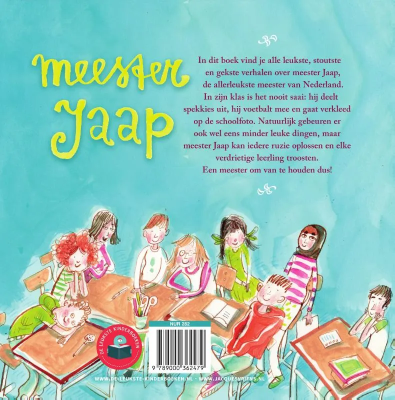 Meester Jaap is de allerleukste meester van Nederland. In zijn klas is het nooit saai: hij deelt spekkies uit, haalt een kip in de klas en begint een appelmoesfabriek. Maar ook bij minder leuke dingen probeert meester Jaap op zijn manier te helpen. Deze bundel bevat Meester Jaap, Meester Jaap doet het weer, Meester Jaap gaat nooit verloren, Meester Jaap maakt er een puinhoop van, Meester Jaap houdt van iedereen! (meestal…) en Meester Jaap is een held (op sokken!).