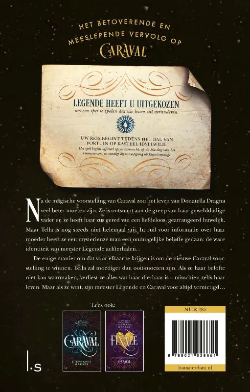 Het betoverende vervolg op de internationale besteller Caraval, waarin Scarlett en Donatella zich opnieuw laten meeslepen door theaterspektakel van meester Legende.