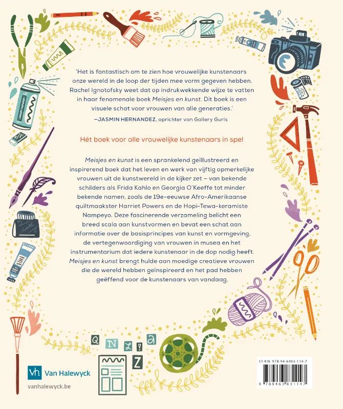 Meisjes en kunst is een sprankelend geïllustreerd en inspirerend boek dat het leven en werk van vijftig opmerkelijke vrouwen uit de kunstwereld in de kijker zet – van bekende schilders als Frida Kahlo en Georgia O’Keeffe tot minder bekende namen, zoals de 19e-eeuwse Afro-Amerikaanse quiltmaakster Harriet Powers en de Hopi-Tewa-keramiste Nampeyo. Deze fascinerende verzameling belicht een breed scala aan kunstvormen en bevat een schat aan informatie over de basisprincipes van kunst en vormgeving, de vertegenwoordiging van vrouwen in musea en het instrumentarium dat iedere kunstenaar in de dop nodig heeft.