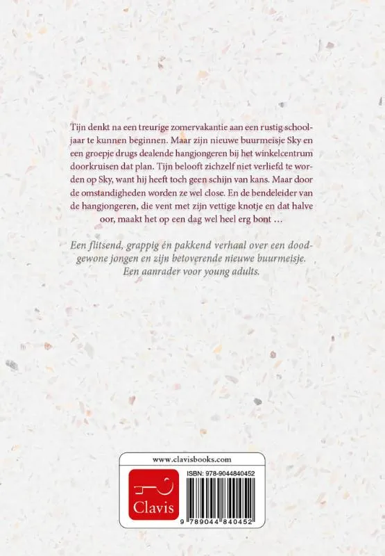 Tijn denkt na een treurige zomervakantie aan een rustig schooljaar te kunnen beginnen. Maar zijn nieuwe buurmeisje Sky en een groepje drugs dealende hangjongeren bij het winkelcentrum doorkruisen dat plan. Tijn belooft zichzelf niet verliefd te raken op Sky, want hij heeft toch geen schijn van kans. Maar door de omstandigheden worden ze wel close. En de bendeleider van de hangjongeren, die vent met zijn vettige knotje en dat halve oor, maakt het op een dag wel heel erg bont …