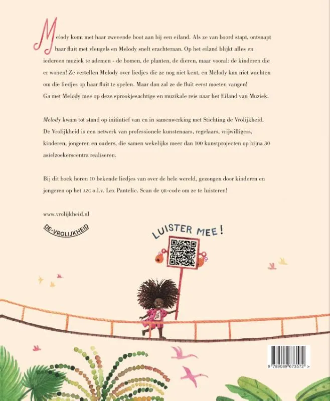 Het meisje Melody komt met haar zwevende boot aan bij een eiland. Haar gevleugelde fluit heeft haar de weg gewezen. Op het eiland blijkt alles en iedereen muziek te ademen: de bomen, de planten, de dieren, maar vooral: de kinderen die er wonen! Melody hoort liedjes in allerlei talen die ze niet kent, maar de taal van de muziek blijkt voor iedereen verstaanbaar. En Melody wil die liedjes maar wat graag leren …