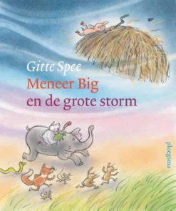 Tijdens een hoosbui komt iedereen schuilen in het veilige huisje van meneer Big. Maar het dak lekt, en net als meneer Big dat wil gaan repareren, steekt er een woeste storm op. De storm blaast het hele dak eraf, mét meneer Big en al! <br>