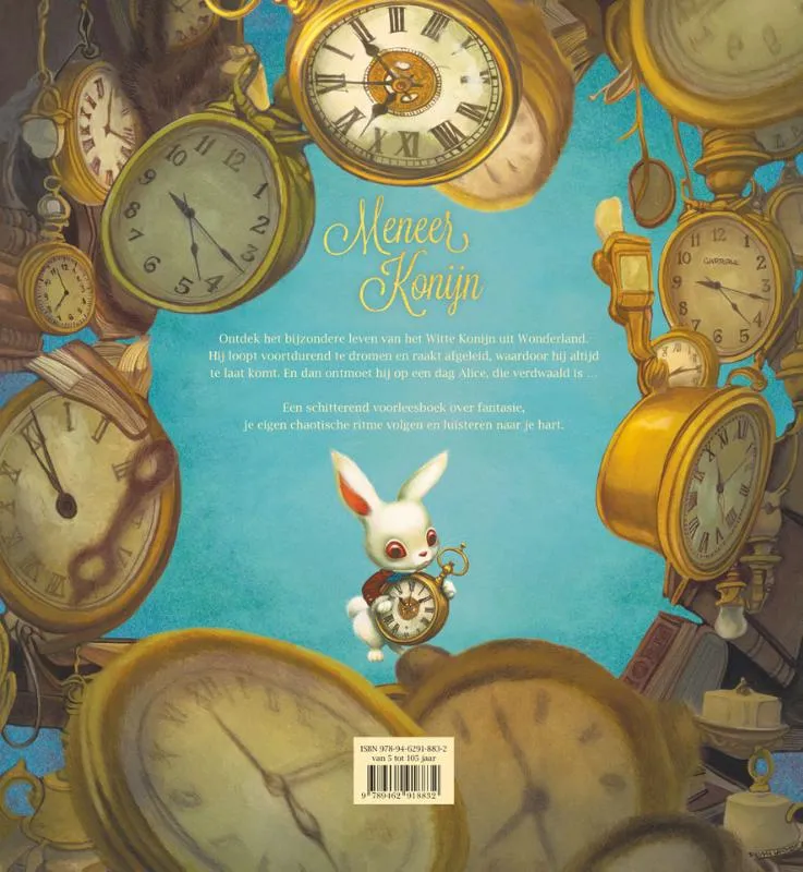 Dit luxueus uitgegeven voorleesboek met betoverende illustraties van Benjamin Lacombe blaast het leven van Meneer Konijn uit ‘Alice in Wonderland’ nieuw leven in.In een vreemd en betoverend land, waar horloges belangrijker zijn dan goede manieren, woont een klein, wit konijn. Hij komt altijd en overal te laat, zélfs bij zijn eigen geboorte, pas uren na zijn broertjes en zusjes, en toen was de melk al op! Op weg naar school raakt hij steeds afgeleid door de schoonheid van de natuur en zelfs voor zijn sollicitatie op het paleis is hij bijna te laat. Toch mag hij beginnen als bewaker bij de Hartenkoningin. Zo ontmoet hij op een dag de wonderlijke Alice.