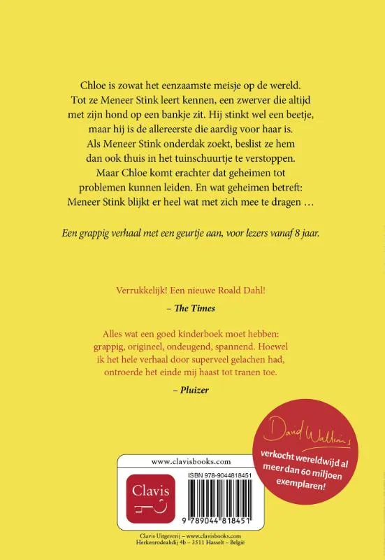 Chloe is heel erg eenzaam. Dan ontmoet ze meneer Stink. Hij is de enige die aardig is tegen haar, ook al stinkt hij een beetje. Meneer Stink heeft een plaats nodig om te wonen en daarom verstopt Chloe hem in het tuinhuis. Chloe heeft dus nu een geheim. En van het ene geheim komt het andere. Het worden hilarische toestanden met meneer Stink in het tuinhuis. En of Chloe’s moeder, die midden in een verkiezingscampagne zit, daar nu zo blij mee is …Luchtig verteld met veel humor en veel grappige illustraties. Een aanrader voor kinderen vanaf 8 jaar. Dit boek is ongetwijfeld voor veel kinderen dé opstap naar zelf boeken lezen.