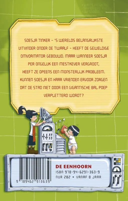 Soesja Tinker, ’s werelds eerste uitvinder onder twaalf jaar, heeft een geweldige vergroot-machine gebouwd. Maar dan vergroot Soesja per ongeluk een mestkever tot gigantische proporties. En heeft ze plots een monsterlijk groot probleem … Kunnen Soesja en haar vrienden ervoor zorgen dat de stad niet verpletterd wordt onder een gigantische hoop stront?