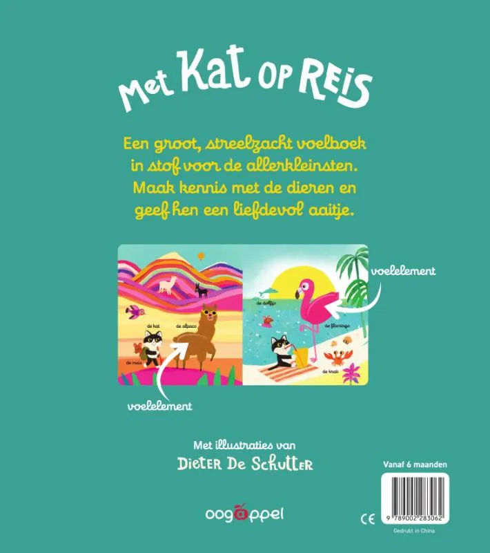 Een groot, streelzacht voelboek in stof voor de allerkleinsten.Maak kennis met de dieren en geef hen een liefdevol aaitje.