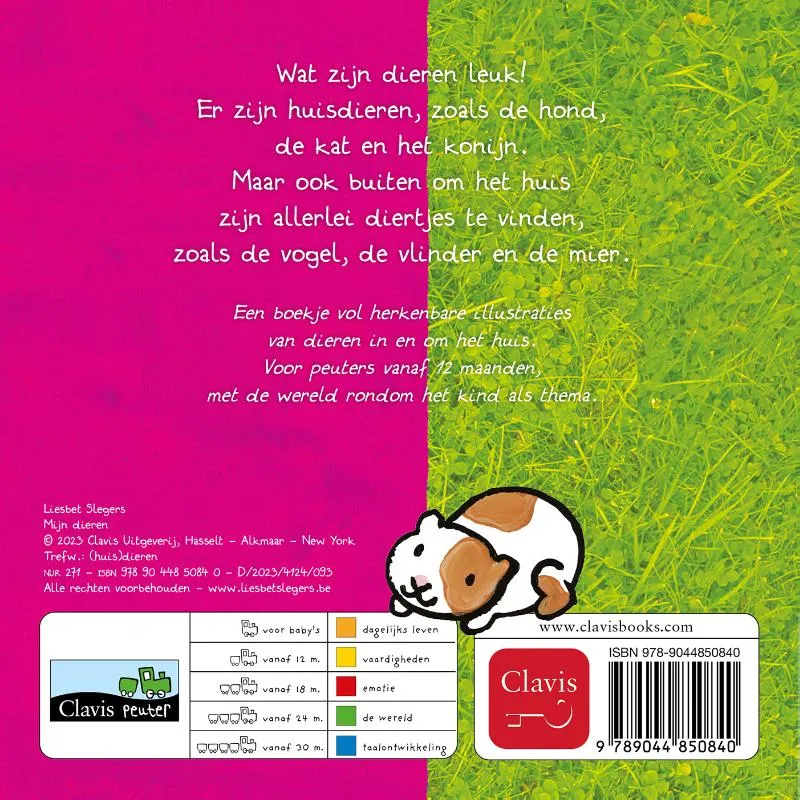 Een boekje vol herkenbare illustraties van dieren in en om het huis.