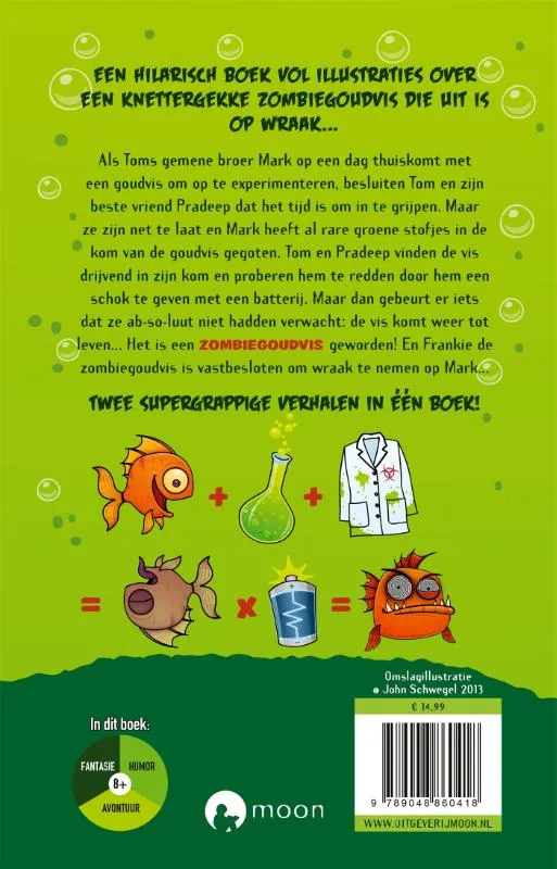 Een hilarisch boek vol illustraties over een knettergekke zombiegoudvis die uit is op wraak…