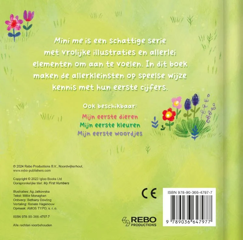 Mini me is een schattige serie met vrolijke illustraties en allerlei elementen om aan te voelen. In dit boek maken de allerkleinsten op speelse wijze kennis met hun eerste cijfers.