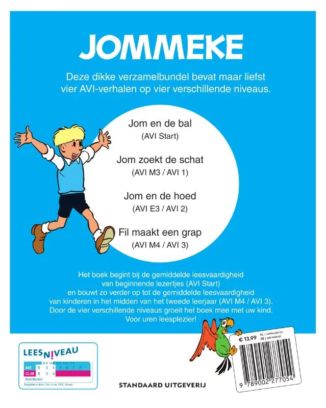 Deze dikke verzamelbundel bevat maar liefst vier AVI-verhalen op vier verschillende niveaus: Jom en de bal, Jom zoekt de schat, Jom en de hoed en Fil maakt een grap. Van AVI-start tot M4: zo groeit je kind mee met de avonturen van Jommeke!