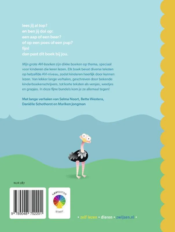 Zin in een lang verhaal? Of meer in de stemming voor een kort mopje? In ‘mijn grote AVI Start boek over dieren’ vind je het allemaal! Bekende kinderboekenschrijvers verrassen beginnende lezers met de leukste dierenverhalen op AVI Start-niveau.