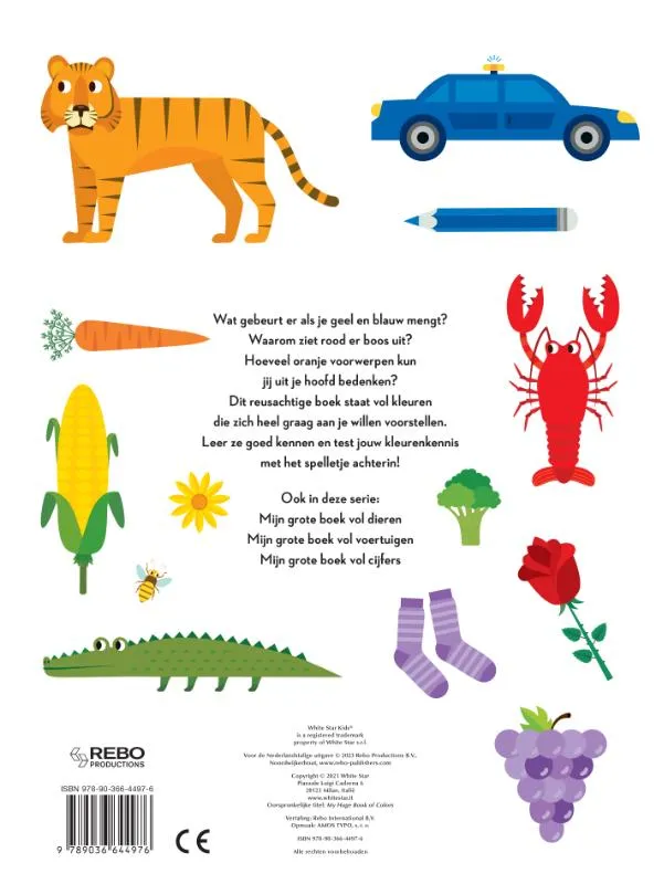 Wat gebeurt er als je geel en blauw mengt? Waarom ziet rood er boos uit? Hoeveel oranje voorwerpen kun jij uit je hoofd bedenken? Dit reusachtige boek staat vol kleuren die zich heel graag aan je willen voorstellen. Leer ze goed kennen en test jouw kleurenkennis met het spelletje achterin!