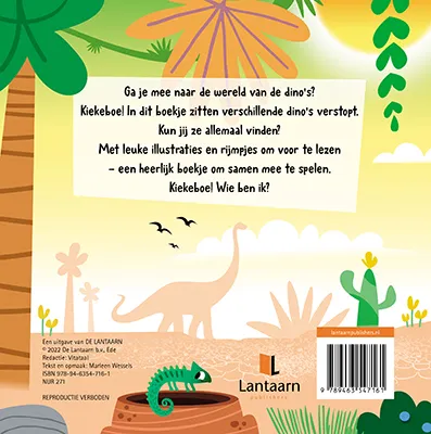 Kiekeboe! Wie ben ik? Zoek samen naar de verstopte dino’s achter de vrolijke vilten flapjes. Leer spelenderwijs de dino’s kennen door een verhaaltje. Wie zit er verstopt achter de vleugel? Het is een Pteranodon! Het stevige karton maakt dat het boek tegen een stootje kan. Ontdek ook de andere thema’s!