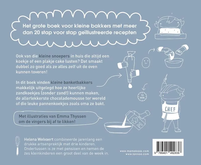 In dit boek vinden kleine banketbakkers makkelijk uitgelegd hoe ze heerlijke zandkoekjes (zonder zand!) kunnen maken, de allerlekkerste chocolademousse ter wereld of die leuke pannenkoekjes zoals oma ze bakt.