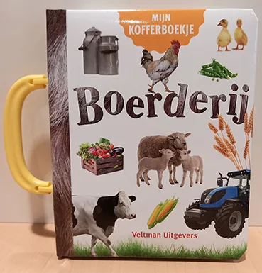 Met handvat, zodat kinderen het boek als een koffertje mee kunnen nemen.