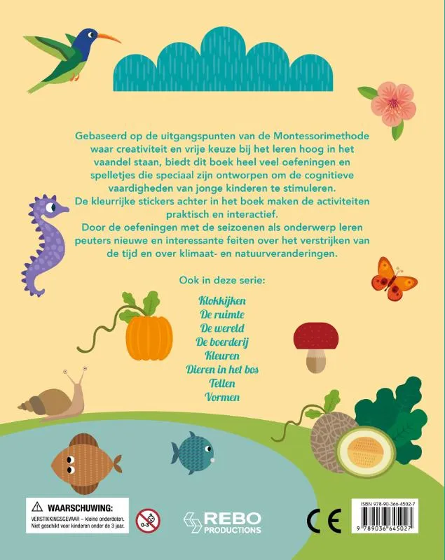 Gebaseerd op de uitgangspunten van de Montessorimethode waar creativiteit en vrije keuze bij het leren hoog in het vaandel staan, biedt dit boek heel veel oefeningen en spelletjes die speciaal zijn ontworpen om de cognitieve vaardigheden van jonge kinderen te stimuleren. De kleurrijke stickers achter in het boek maken de activiteiten praktisch en interactief.