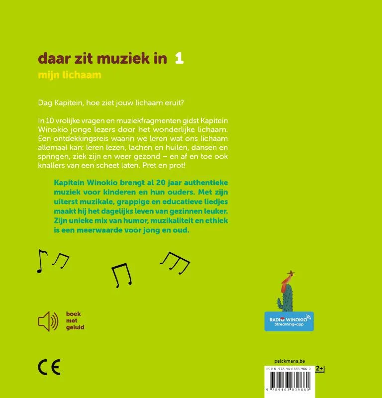 In 10 vrolijke vragen en muziekfragmenten gidst Kapitein Winokio jonge lezers door het wonderlijke lichaam. Een ontdekkingsreis waarin we leren wat ons lichaam allemaal kan: leren lezen, lachen en huilen, dansen en springen, ziek zijn en weer gezond – en af en toe ook knallers van een scheet laten. Pret & prot!