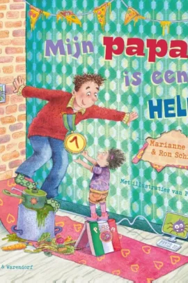 Mijn papa is een held! is een fijn voorleesboek op rijm voor kleuters vanaf 4 jaar. Petra Heezen maakte de grappige illustraties.