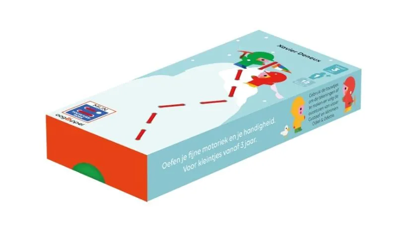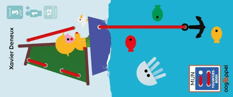 Gebruik de touwtjes om de tekeningen af te maken en volg de avonturen van visser Gustaaf en klimmers Odiel & Odette. Kies een verhaal uit en zoek de 6 kaartjes die bij het verhaal horen. Neem een touwtje en maak de tekening af. Dat doe je door het touwtje door de gaatjes van het kaartje te rijgen. Hulp nodig? Op de achterzijde van de handleiding vind je de juiste volgorde en wat rijgideeën. Oefen je fijne motoriek en je handigheid. Voor kleintjes vanaf 3 jaar.
