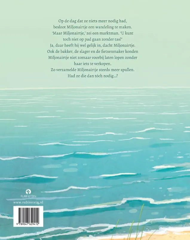 Op de dag dat ze niets meer nodig had, besloot Miljonairtje een wandeling te maken. ‘Maar Miljonairtje,’ zei een marktman. ‘U kunt toch niet op pad gaan zonder tas?’ Ja, daar heeft hij wel gelijk in, dacht Miljonairtje. Ook de bakker, de slager en de fietsenmaker konden Miljonairtje niet zomaar voorbij laten lopen zonder haar iets te verkopen. Zo verzamelde Miljonairtje steeds meer spullen. Had ze die dan tóch nodig…?